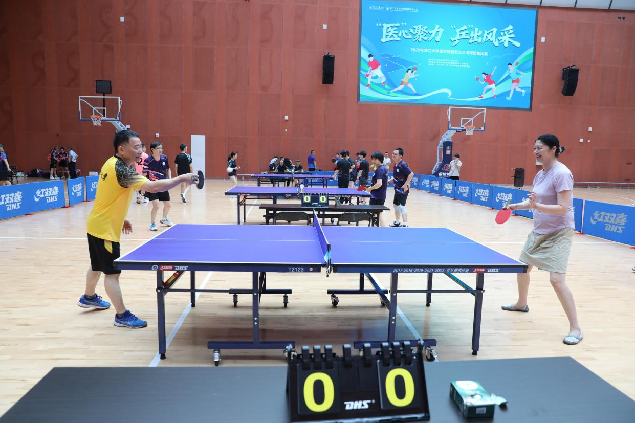 刘有恃在致辞中表示,从钱学森“乒乓球外交”的智慧传承,到“每天锻炼一小时”的当代号召,小小白球始终承载着团结奋进的时代内涵。期待通过本次赛事,进一步展现医学院及各附属医院教职工团结协作、拼搏进取的精神风貌,激发广大教职工的运动热情,以更强健的体魄、更饱满的状态投入工作,为医学院及各附属医院高质量发展注入澎湃动能。